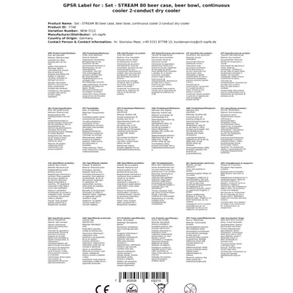 Under-counter komplet sæt – fadølsanlæg STREAM 80 ølkasse, gennemstrømningskøler 2-linjers tørkøler Består af: •Fadølsanlæg STREAM 80 ølkasse, gennemstrømningskøler 2-linjers tørkøler•Forbindelser: John Guest•1x dispenser / pumpetårn, matbørstet, 2-sidet•2 x ølslange 7mm komplet, klar, 3,0 m•2 x rengøringsadapter 30 mm•1 x trykreduktion 2-sidet CO2 til øl dispenser 3bar•1 x CO2-flaske, 2,0 kg•2 x CO2-slange komplet, 1,5 m•2 x ølslange John Guest – 3/8 og 5/8 skruestik 2,00 m – helt færdig!•Kuldioxidnøgle fanget•2 x dispenseringshoved, dit valg: uden, flad, kombi, kurv, Köpi Zapfanlæg STREAM 80 Ølkasse, gennemløbskøler med 2 rør, tørkøler, op til 90 liter/time Zapfanlæg STREAM 80 Ølkasse, gennemløbskøler med 2 rør, tørkøler, op til 90 liter/time 3 minutter at pakke ud… 2 minutter at opstille… 1 minut at tilslutte = uendelig nydelse.En kold, klar, frisktappet – du har fortjent det!Ølkøleren STREAM 80 2lt er designet til professionel køling og udskænkningaf fremragende afkølet øl i hjemmet, til havefesterog til mellemstore kommercielle formål. •Reguleringsområde+2 til +10 grader•Ydelse:90 L/time ved 10°C TD•Køleteknologier 45% mere effektiv•Klar til brugpå kun 5-10 minutter Hvis termostaten indstilles på Max.,vil termoblokken (efter ca. 10 minutter) akkumulere en stor mængdeenergi, og dermed muliggøre udskænkning afflere afkølede øl efter hinanden.Køleteknologien i STREAM 80 Zapfanlægget er omkring 45% mere effektiv end det elektriske effektforbrug.Øllet køles ned til taphanen.Kølesløjferne er lavet af rustfrit stål og er derfor stabile og holdbare. De anvendte materialer opfylder de højeste hygiejnestandarder og sikrer en lang levetid for køleren. STREAM 80 2lt – og den kolde øl strømmer fra 2 haner Med sin stærke køleydelse og perfekte dimensioner hører ølanlægget STREAM 80 til de førende 2-kanals bord-/underbordskølere på markedet. Køleydelse fra 170 til 180 glas (0,5 liter) fremragende afkølet øl pr. time, Den kraftige kompressor i STREAM 80 sikrer minimalt energiforbrug og fremragende afkølet øl uden at skumme Gennemløbskøler STREAM 80 2ltg. – Effektivitet, Ydelse, Nydelse Termoblokken i STREAM 80 Bierzapfanlægget har høj energikapacitet, således at der allerede efter 5-10 minutter kan tappes perfekt afkølet øl. Hvis termostaten indstilles på Max., vil termoblokken (efter ca. 10 minutter) akkumulere en stor mængde energi, og dermed muliggøre udskænkning af flere afkølede øl efter hinanden. Køleteknologien i STREAM 80 Zapfanlægget er omkring 45% mere effektiv end det elektriske effektforbrug. Øllet køles ned til taphanen. Kølesløjferne er lavet af rustfrit stål og er derfor stabile og holdbare. De anvendte materialer opfylder de højeste hygiejnestandarder og sikrer en lang levetid for køleren. Gennemløbskøler STREAM 80 – Tekniske specifikationer Den elegante STREAM 80 tørkøler med en vægt på kun 45 kg er udstyret med en 7 mm ledning. •Mål: (BxDxH) 255х635х510 mm (inkl. drypbakke)•Strøm: 220V, 50 Hz, 764W, 4,3A•Kompressor: 3/8 PS•Ledning: 2 x øltyper•Kabinet: Metal, pulverlakeret, rustsikker Høj kvalitet af bearbejdning og emballering STREAM 80 – Topklasse blandt 2-kanals ølanlæg Ølkøleren STREAM 80 er i kategorien Ølanlæg op til 90 l/time en af de bedste med hensyn til pris-,ydelses-, kvalitetsforhold. Let rengøring af STREAM 80 Med følgende rengøringssæt kan du nemt og bekvemt rengøre STREAM 80 øltappelægget efter brug: Rengøringssæt lille Nem rengøringssæt (anbefales) Rengøringssæt stort Zapfanlæg STREAM 80 – Ølkasse, gennemløbskøler med 2 rør, tørkøler, op til 60 liter/time Det er hurtigt at tappe: Pak zapfanlægget ud Forbind reduktionsventilen til CO2-flasken med hjælp fra kulsyreslange-nøglen og stram til Forbind CO2-slangen fra reduktionsventilen til taphovedet Forbind ølslangen til taphovedet og indsæt og fastgør den i zapfanlægget Stik fatningen Indstil trykket på reduktionsventilen Forbind zapfanlægget til stikkontakten Indstil trykket og nyd en kold øl