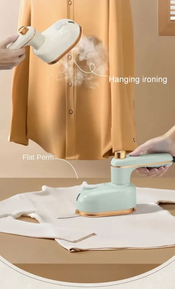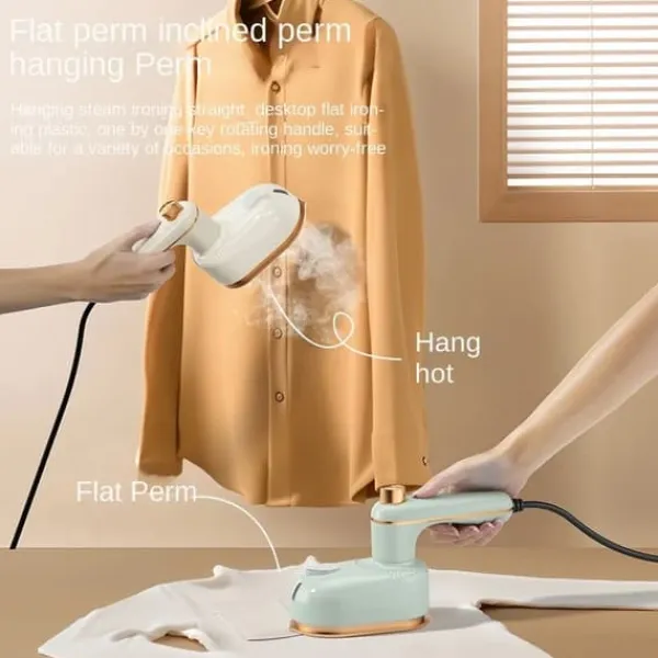 Bærbar 2‑i‑1 tøjsteamer og tørstrygejern – hurtig opvarmning og glatte resultaterDette kompakte, grønne håndapparat forener kraftig damp med tørstrygning. Med hurtig opvarmning og et roterbart, bærbart håndtag fjernes folder effektivt – ideelt hjemme og på farten med EU-stik.