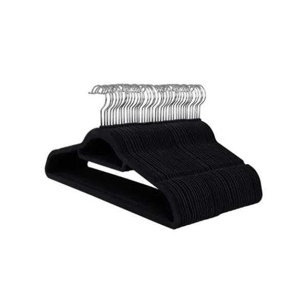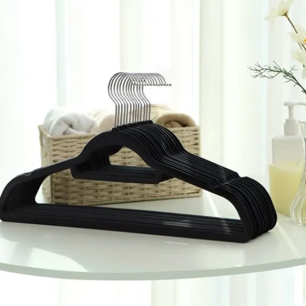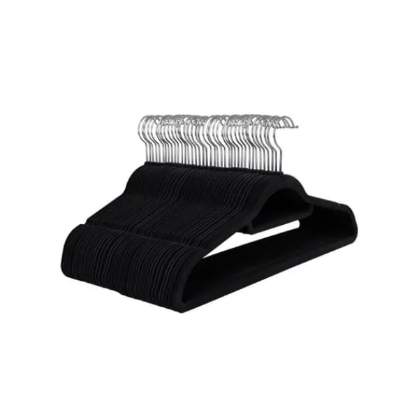 Songmics-bøjlen med floket overflade giver dig en skridsikker, pladsbesparende og holdbar løsning til ophængning af tøj. For at opfylde forskellige behov er denne bøjle designet multifunktionelt, så du ikke kun kan hænge frakker eller toppe sikkert, men også finde plads til dine bukser og slips.Bemærkninger:Brug en hårtørrer til at blæse overfladens fnug af før brug (overfladens fnug i pakkeposerne eller på bøjlerne kan eksistere, det er et normalt fænomen, vær ikke bekymret). Undgå at efterlade bøjlerne i rum med høj luftfugtighed og høje temperaturer i længere tid. Undgå at hænge vådt vasketøj på bøjlerne.Produktdetaljer:Materiale: ABS (plast) + fløjl Farve: sortDimensioner: 45 x 23,5 x 0,6 cm (B x H x D) Højde på krog: 8 cm Åbning af krog: 5,4 cmLeveringsomfang:50 x bøjler med buksestang
