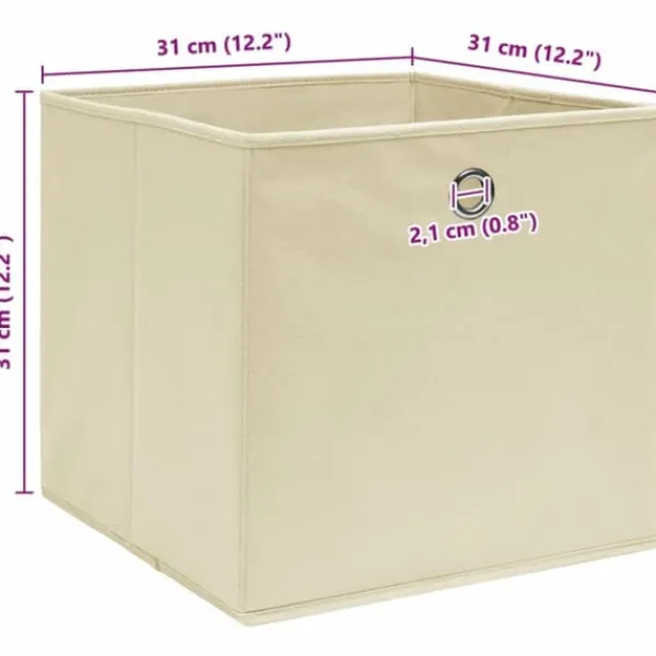 De praktiske opbevaringskasser er fremstillet af ikke-vævet stof, hvilket gør dem ret holdbare. Hver opbevaringskasse har et praktisk metaløje, så du nemt kan tage dem ud af klædeskabet, ned fra hylden mv. Opbevaringskasserne kan nemt foldes sammen for at spare plads, når de ikke er i brug.