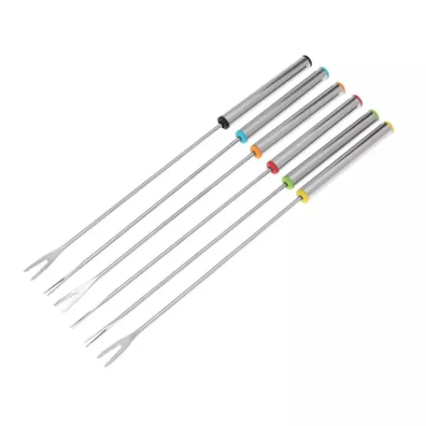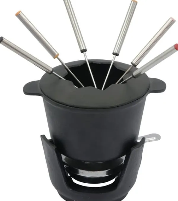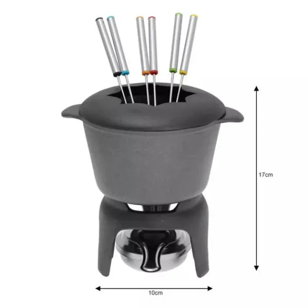 Fondue er en god idé til at feste sammen i lange aftener. Mængden af opskrifter på forskellige typer fondue giver os næsten ubegrænsede muligheder for at organisere forskellige måltider. Fra traditionel ostefondue, over kød- og grøntsagsfondue, til frugtfondue med chokolade. Støbejern lagrer og fordeler varmen godt. Kedelhøjde: 10 cm Kedeldiameter: 17 cm Gaffellængde: 23,5 cm – Perfekt sæt til enhver form for fondue: kød, ost, chokolade. – Sættet indeholder: et støbejernsstativ, en støbejernsgryde med låg, en brænder med låg, gafler – 6 stk – Alt sammen pakket i en elegant æske.