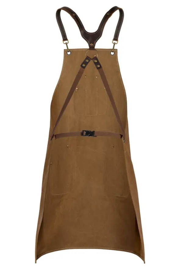 Shiori-grillforklæde i vokset kanvas med læderdetaljer .