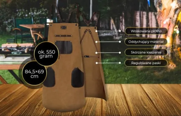 Forklædet er lavet af komfortabelt, åndbart materiale. Læderlommer med nem adgang er multifunktionelle til forskellige køkkenredskaber.