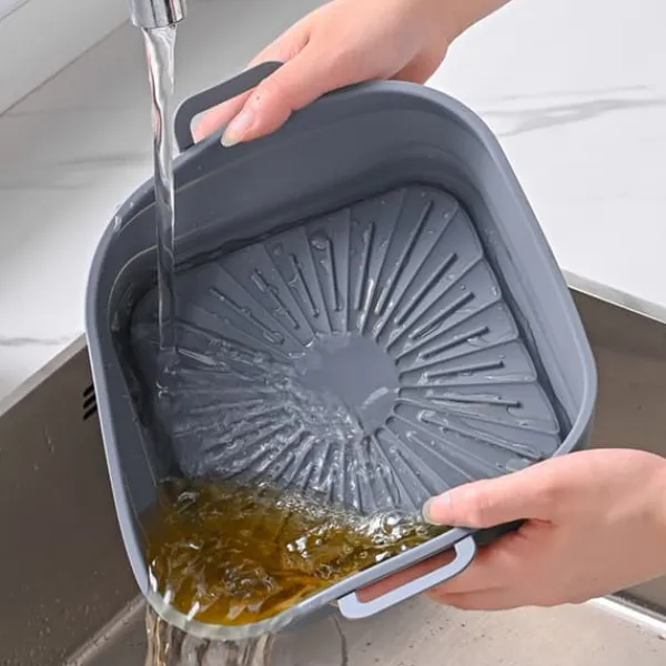 – 3D dræningsrille: Det unikke 3D-dræningsrilledesign af frituregrydens silikoneforinger giver mulighed for separat oliefiltrering, forbedret luftcirkulation og kompatibilitet med frituregryder, mikrobølgeovne og konventionelle ovne.