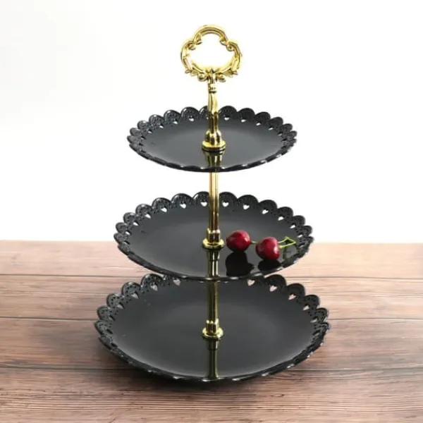 4、Tre lager lagring: Brickställ i tre nivåer för förvaring eller visning av snacks, desserter, kakor, muffins, frukt, godis, choklad, bakverk.