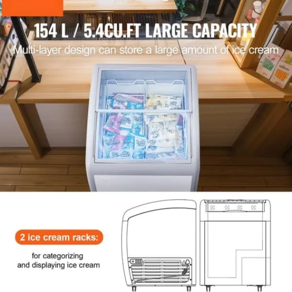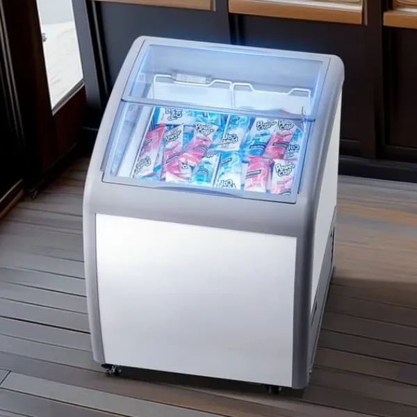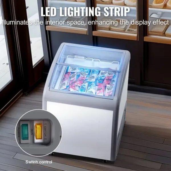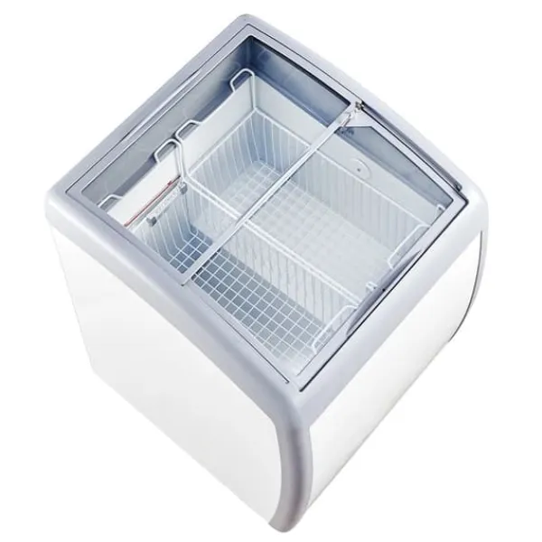 Denne kommercielle ismontre har 2 isudstillingskurve og LED-strimmelbelysning og en højsynlighedsdør i hærdet glas for at forbedre displayeffekten. Kunderne kan nemt vælge deres yndlingsis.