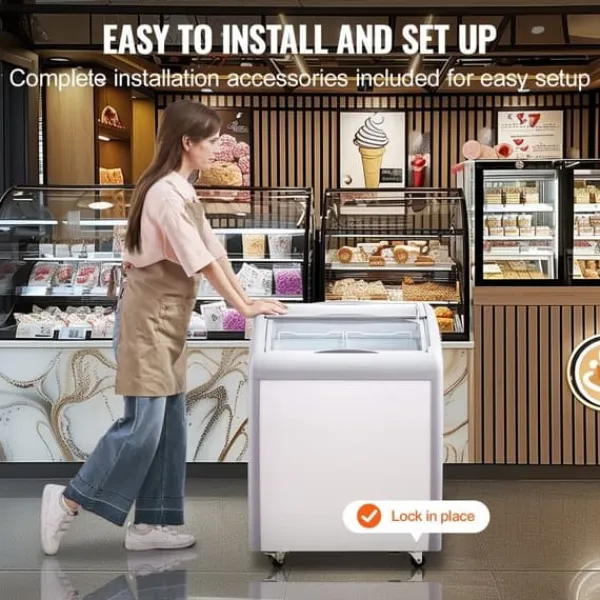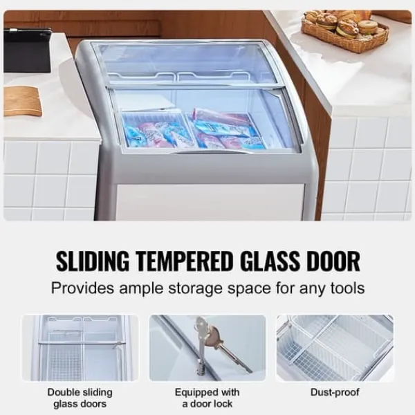 Hver mobil kummefryser i glas er designet med glasdøre, der kan åbnes i begge retninger, hvilket gør det bekvemt for dig at få adgang til isen. Dørene er udstyret med låse for ekstra sikkerhed.