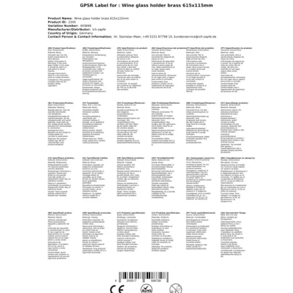 Glasholder messing 685x145mm – 685×145 mm Til bagsiden, skinnerne og er smal, så kan ikke falde ud briller! Maksimal glas gulv kan have en diameter på 9 cm!