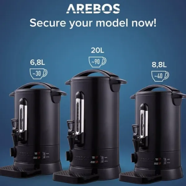 Forsød den kolde årstid med den højkvalitets 950 W gløggmaskine fra AREBOS. Den professionelle varmtvandsdispenser tilbyder konstant opvarmning og praktisk tilberedning af varme drikke såsom te, kaffe, gløgg og øl. Apparatet er velegnet til både catering og hjemmebrug.