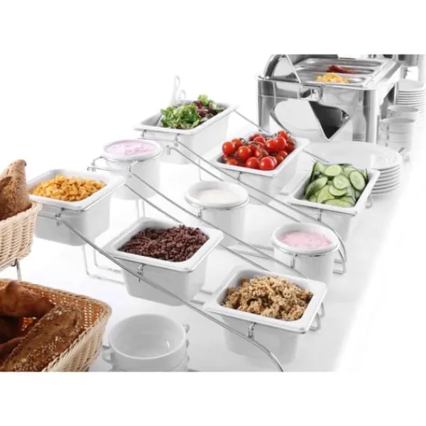 Producentnummer: Hendi 783009 Den æstetiske GN-beholder fra Profi Line-serien fra Hendi er et fartøj, der vil blive brugt i professionelle anlæg og cateringvirksomheder. Den er lavet af det mest holdbare porcelæn, der findes på markedet og er modstandsdygtig over for termiske stød. Egenskaber og funktioner: – Profi Line-serien, – lavet af hvidt blankt porcelæn, – modstandsdygtig over for ekstreme temperaturændringer, – høj modstandsdygtighed over for mekaniske skader, – praktisk stabling, – kan bruges i mikrobølgeovne, – tåler opvaskemaskine, – modstandsdygtig over for temperaturer op til 600 grader C, – let vægt, – GN standard: 1/1, – mål (LxBxH): 530 x 325 x 65 mm. Sættet indeholder: – GN 1/1 beholder