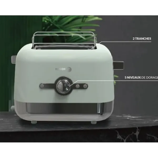 FAGOR FG1930 brödrost är en högpresterande apparat från 730W till 870W som låter dig rosta 2 skivor samtidigt. Den har 5 bryningsnivåer för att passa alla preferenser. Knapparna Uppvärmning, Upptining och Avbryt gör den enkel att använda. Avtagbar smulbricka möjliggör enkel rengöring. Huvudfärg: Grön.