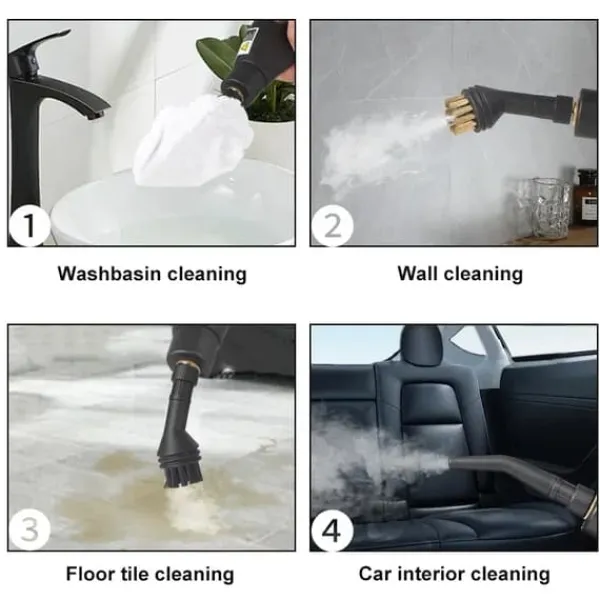 AlsidigVelegnet til kogeplader, armaturer, flisefuger, vindueskarme, bilkabine og klimaanlæg. Varm damp hjælper med at reducere op til 99,9% af almindelige bakterier.