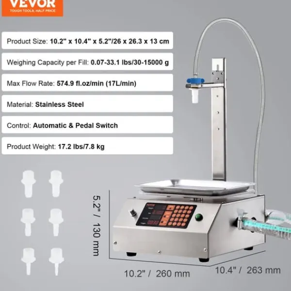 - effektiv høj flow rate: opnå hurtig fyldning med en maksimal flow rate på 574,9 fl. oz/min, ideel til små batchproduktion af forskellige væsker med lav til medium viskositet.