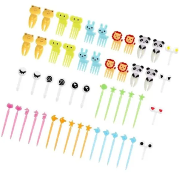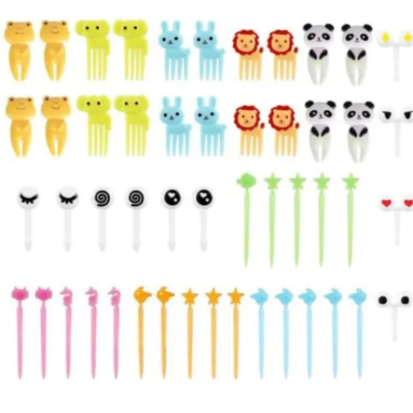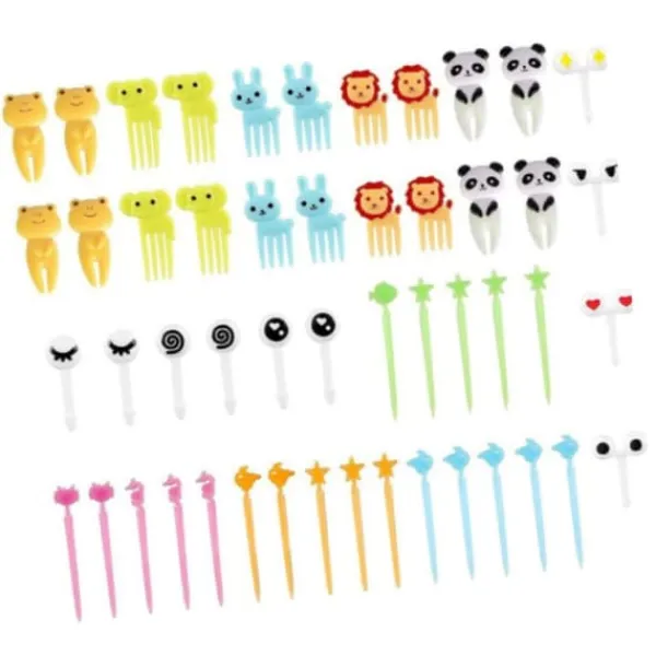 Du modtager 50 stk. dyrefodergafler med elefanter, kaniner, løver og andre dyr i forskellige farver. Disse nuttede gafler er perfekte til at tilføje et strejf af sjov til bentobokse (tilfældige farver).