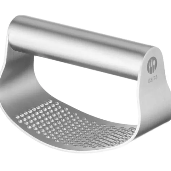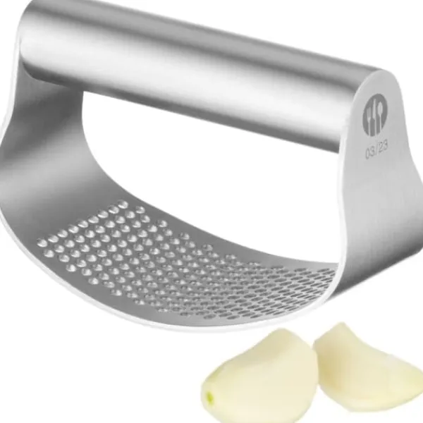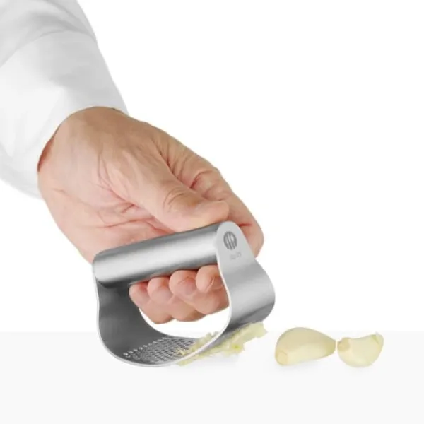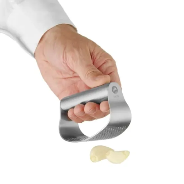 Producentkode: 856260 HENDI hvidløgspressen, lavet af rustfrit stål, er designet til at knuse selv flere fed på én gang. Dens unikke afrundede form giver dig mulighed for at arbejde hurtigt, effektivt og ergonomisk. Den er nem at rengøre og er også velegnet til andre produkter end hvidløg, f.eks. Maskeåbningen har en diameter på 3 mm. Produktegenskaber: – Griber flere tænder på én gang, – Kan bruges med én hånd, – Åben form letter rengøring, Tekniske parametre: – Katalognummer – 856260 – Artikeltilstand – Ny – Materiale – Rustfrit stål 18/0 – Håndtagslængde [mm ] – 96 – Højde [mm] – 70 – Længde [mm] – 105 – Tykkelse [mm] – 1,5 – Bredde [mm] – 50 – Maskediameter [mm] – 3 Sættet indeholder: – Hvidløgspresser