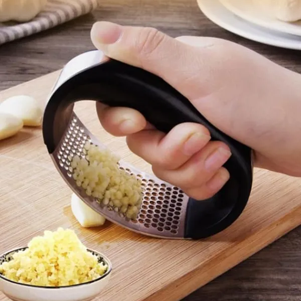 Vitlökspress i rostfritt stål som både är extremt effektiv, snygg & stilren! Perfekt för de stora vitlöksklyftorna som aldrig får plats i en vanlig vitlökspress.