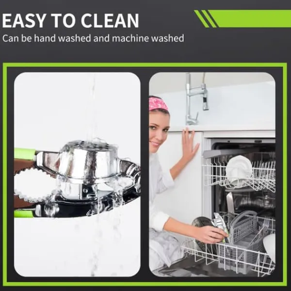 Det skridsikre håndtag sikrer komfort og sikkerhed og beskytter dine hænder mod skader og træthed. Efter brug skal du blot skylle enheden under rindende vand eller sætte den i opvaskemaskinen – rengøringen er hurtig og problemfri.