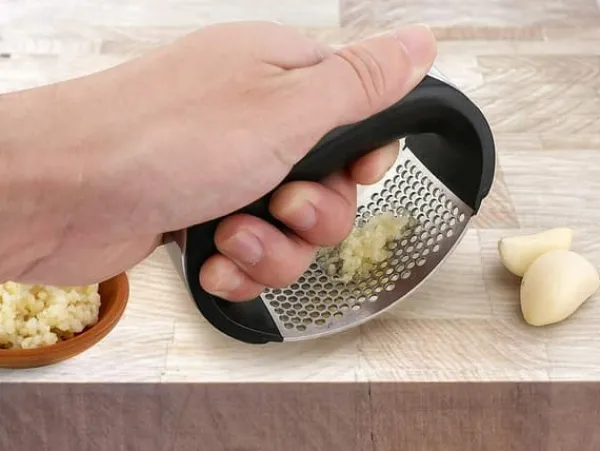 Hvidløgspresseren er den perfekte enhed til dit køkken. Lavet af rustfrit stål, knuser og hakker den hvidløg perfekt. Derudover har den et plastik- og komfortabelt håndtag. Den kan også bruges til at knuse andre små grøntsager og krydderier, , og den knuste pulp kan meget nemt samles op og tilsættes retter. Nem at rengøre, bare skyl den under rindende vand