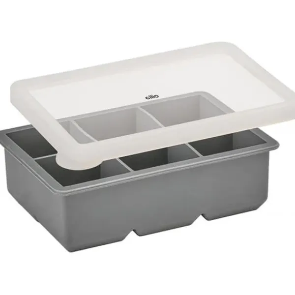Cilio’s isterningsbakke producerer seks store isterninger, som smelter langsomt. De store isterninger forhindrer, at drikken bliver fortyndet og holder den kølig længere. Bakken kan også bruges til små bagværk. Den alsidige bakke er lavet af fødevaresikker silikone, et hygiejnisk alternativt materiale til køkkenet. Den kan klare temperaturer fra -30 °C til +230 °C, hvilket gør den ideel til at lave små isdesserter eller mini-tærter. Cilio er en tysk virksomhed, der blev grundlagt i 1993 og tilbyder et bredt udvalg af praktisk og høj kvalitetsudstyr til servering, køkken og cocktail-anledninger.