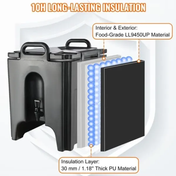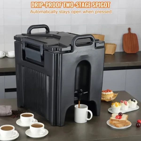 Vi præsenterer vores isolerede drikkedispenser med en kapacitet på 10 gallon (37,6 L), der holder dine varme eller kolde drikke som juice, kaffe, mælk og te ved den perfekte temperatur. Vi er stolte af at bruge fødevaregodkendte materialer til alle komponenter, der kommer i kontakt med dine drikkevarer. Nyd den højeste kvalitet i drikkevarebetjening!