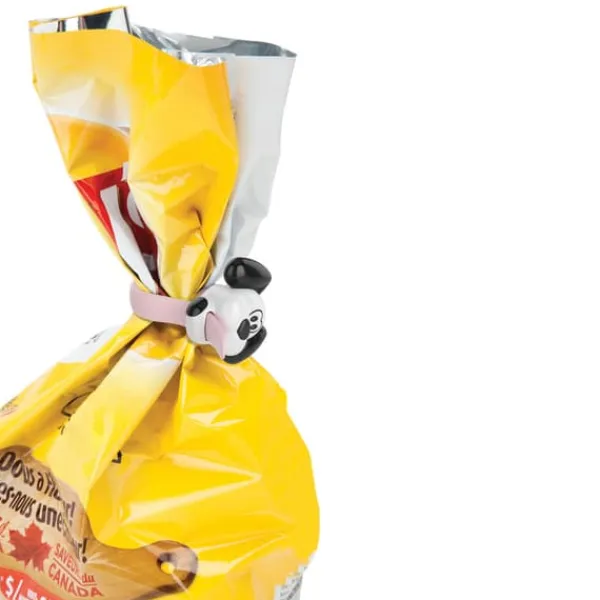 3-pak poseclips med hundemotiv i silikone. Hundens tunge er elastisk og trækkes gennem halsen og kommer ud gennem munden.