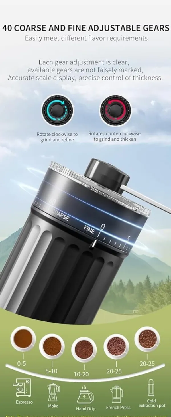 Justerbar formaling: 40 indstillingsniveauer fra fin til grov for optimal tilpasning til din bryggemetode