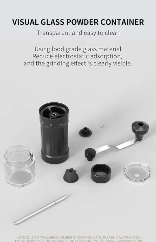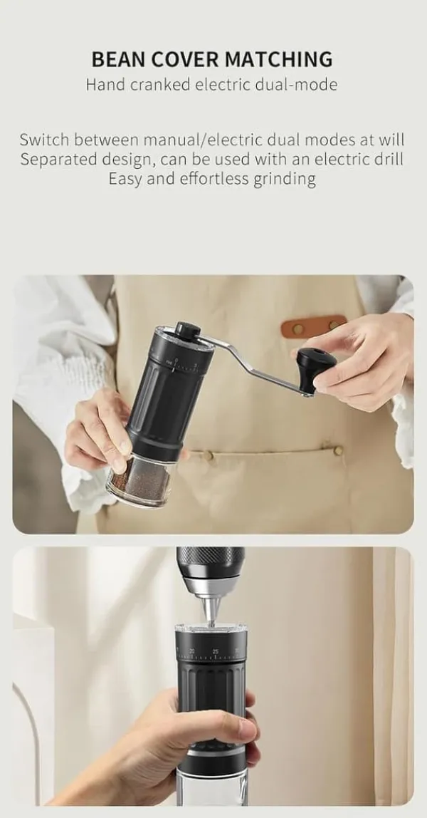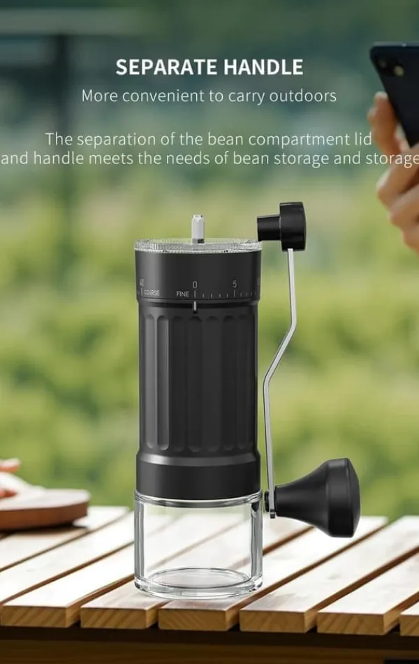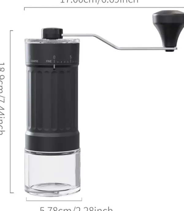 Praktisk design: Gennemsigtig kaffebeholder for nem mængdekontrol + ergonomisk håndsving