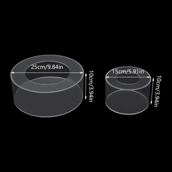 Klar, påfyldelig kageopsats – 2-pak til kreativ og stabil kagepræsentationDette gennemsigtige sæt med påfyldelige kageopsatser (Ø 25 cm og Ø 15 cm, begge 10 cm høje) giver din kage et unikt udtryk og stærk støtte – ideelt til etagekager og elegante dessertborde.