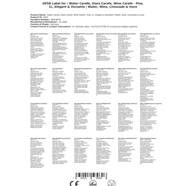 Vandkaraffel, karaffel, vinkaraffel, glas karaffel – Pisa, 1 l Carafes og yderligere kande er ligesom at blive brugt til kuglevin. Men de er også ideelle til at servere hjemmelavet limonade, frugtagtig frugtjuice, mælk på bordet morgenmad, fjollet såvel som pearling vand med og uden is. De mindre karafer kan bruges som en mælkekande til kaffe. Dimensioner: •Indhold: 1000 ml•Højde: 132 mm
