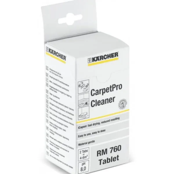 Kärcher Carpet Pro Cleaner RM 760 Tablet er et dybderensende rengøringsmiddel i tablettform, velegnet til tekstilrensere og tryksprøjter til professionelle. Den specielle indkapslingsteknologi gør det let at bruge rengøringsmidlet. Tablettet opløses hurtigt i vaskevandet. Pakken indeholder 16 tabletter. Passer til model: 1.081-220.0 Kärcher SE 6.100 tekstilrenser.