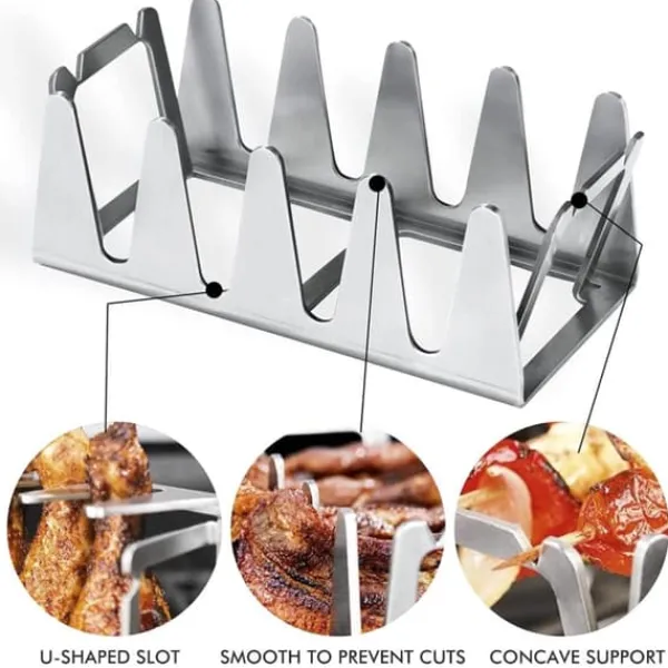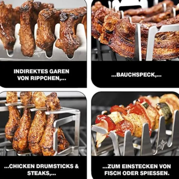 1、 Multifunktionsgrill – Med multifunktionsgrillen blir grillad mat knaprig. Den praktiska grillen är lämplig för en mängd olika grillade maträtter och säkerställer en krispig skorpa. Oavsett om det är revbensspjäll, mage, bacon eller biff, är det lätt att lägga köttet på gallret i perfekt vinkel och låta fettet droppa av.