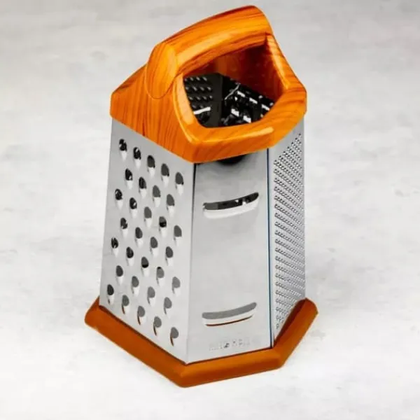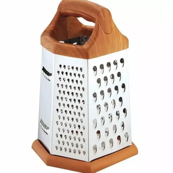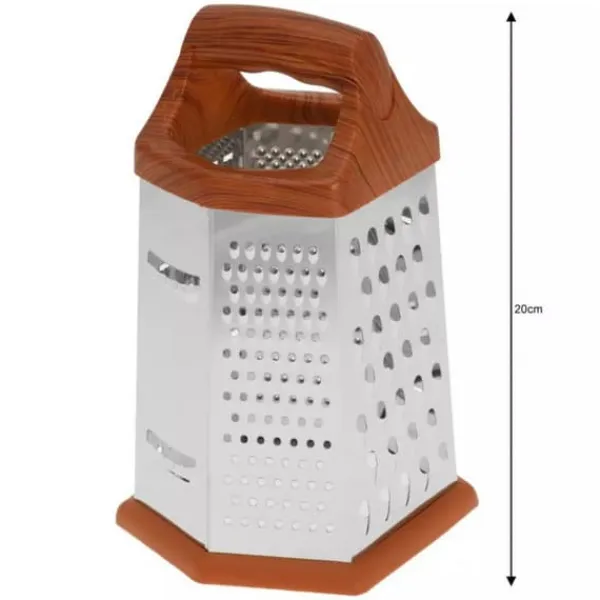 Rivejernet er fremstillet ved hjælp af en to-faset kemisk ætsningsproces, som sikrer enestående skarphed af skæreelementerne. 6 typer makulering at vælge imellem. – Rustfrit stål af høj kvalitet – Høj kniveffektivitet – Komfortabelt, håndsikkert håndtag – 6 typer friktionsoverflader til at hakke grøntsager, rive frugt, ost, chokolade eller andre lignende produkter – Størrelse: Bredde: 13 cm Dybde: 11 cm Højde: ca 20 cm