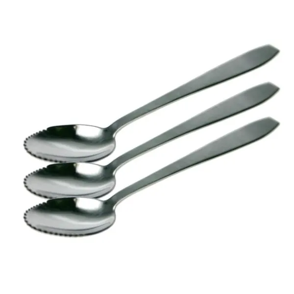 Disse savtakkede kiwiskeer gør det nemt at fjerne frugtkødet fra frugten. Perfekt ikke kun til kiwier, men også til bløde pærer og citrusfrugter. Sæt med 3 skeer i rustfrit stål, tåler opvaskemaskine.