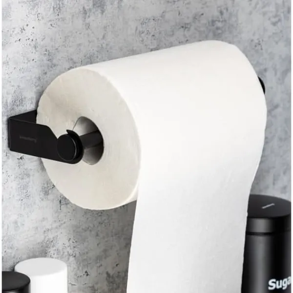 Elegant håndklæde- eller folieholder, kan limes på en overflade eller monteres med skruer.