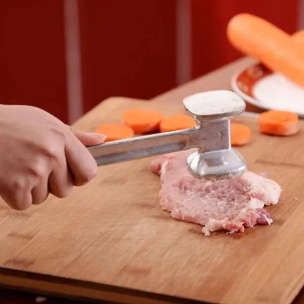Velkommen til vores butik! Denne løse kødhammer er perfekt til at mørne alle typer kød, herunder oksekød, kalvekød, svinekød og kylling. Den er lavet af fødevaregodkendt aluminiumslegering og er robust, holdbar og nem at rengøre. Hammerens glatte side kan bruges til at mose og flade kødbøffer, hvilket gør den utrolig behagelig at bruge. Med sit ergonomiske håndtag er denne hammer behagelig at holde og ideel til madlavning i hjemmet. Den vil forbedre smagen af dine kødretter og er et uundværligt køkkenredskab.