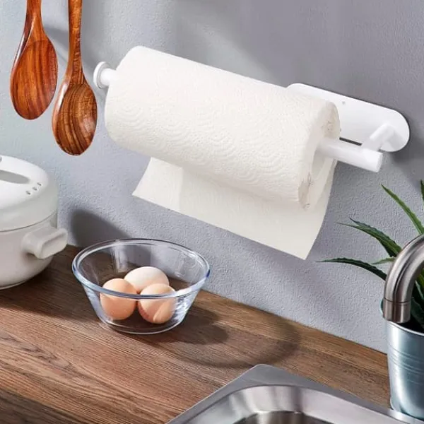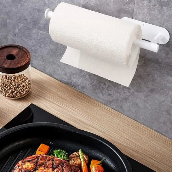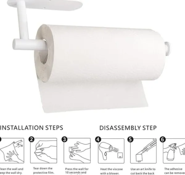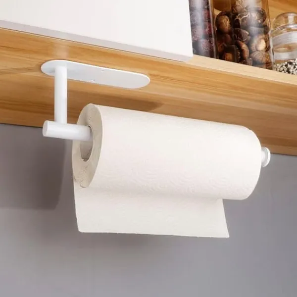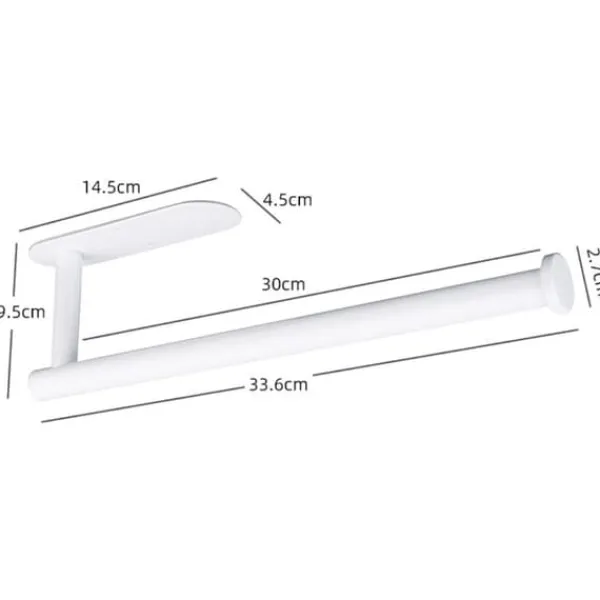 [Funktioner]: Papirhåndklædeholder under skabet: Papirhåndklædeholderen er lavet af SUS 304 rustfrit stål, robust og holdbart, vandtæt og rustbestandigt. Den har god bæreevne og god vedhæftning, så den ikke falder let af. [Anvendelsesområder]: Papirhåndklædeholderen kan bruges til at opbevare håndklæder, papirhåndklæderuller, plastikfolie, papirhåndklædeholder under skabet og alt andet, der kan hænges op. [Anvendbare steder]: Papirhåndklædeholderen kan bruges omkring skabe, på flade vægge, i badeværelser og på toiletvægge. [Installation: Direkte vedhæftning eller boring]: Fjern beskyttelsesfilmen fra tapen, og placer papirhåndklædeholderen på en glat overflade. Boring er også muligt. [Mål og tips]: Papirhåndklædeholderens længde: 33,6 cm. Ikke egnet til tapet eller malede vægge.Pakkens indhold: