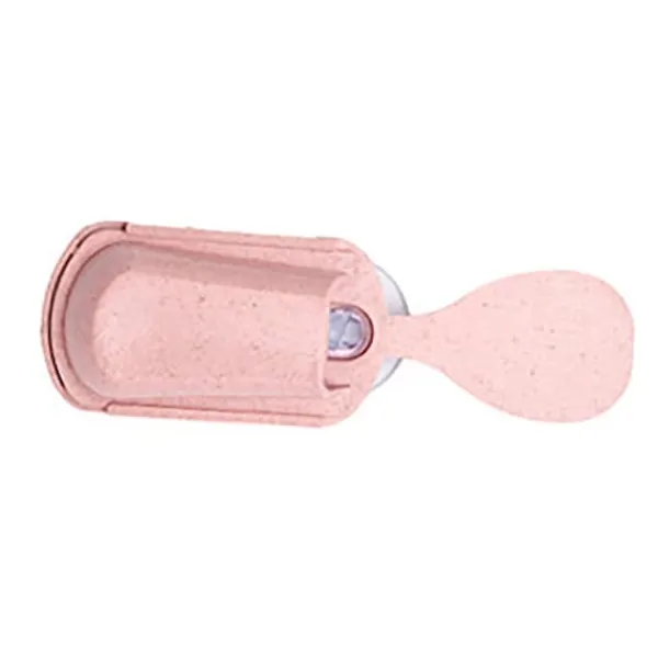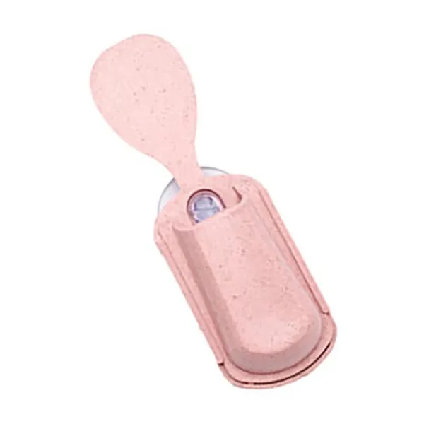 Dette køkkenske-opbevaringsstativ er lavet af hvedemateriale, hvilket sikrer, at det er sundt og miljøvenligt. Denne racks stærke adsorptionsegenskab gør den fast og forhindrer let at falde af. Den er nem at rengøre, uden nogen speciel lugt og kan bruges til forskellige formål. Sugekopdesignet gør det nemt at klæbe til glatte overflader som keramik og riskogere. Med en bred opbevaringsåbning kan den rumme de fleste skeer og gafler med håndtag.