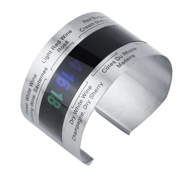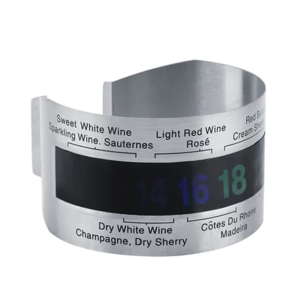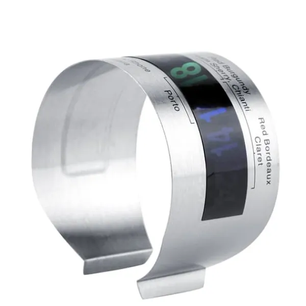Med sit armbåndsurdesign er dette termometer ikke kun nyt og moderigtigt, men også praktisk. Du skal blot fastgøre det til flasken, og temperaturen kan nemt aflæses. Dets mini-størrelse gør det bærbart og bekvemt at have med. Det er velegnet til rød- og hvidvin med anbefalede temperaturer til de fleste vine.