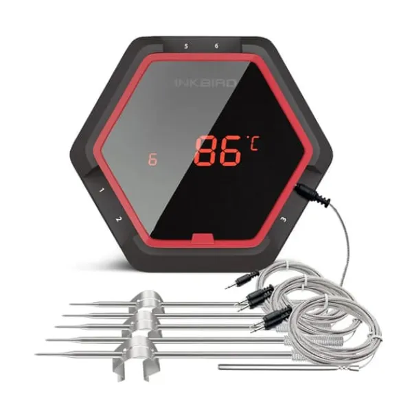 - flere probe brug: med kapacitet til at tilslutte op til 6 prober kan du overvåge forskellige kødudskæringer samtidig, så du nemt kan lave mad til sammenkomster.