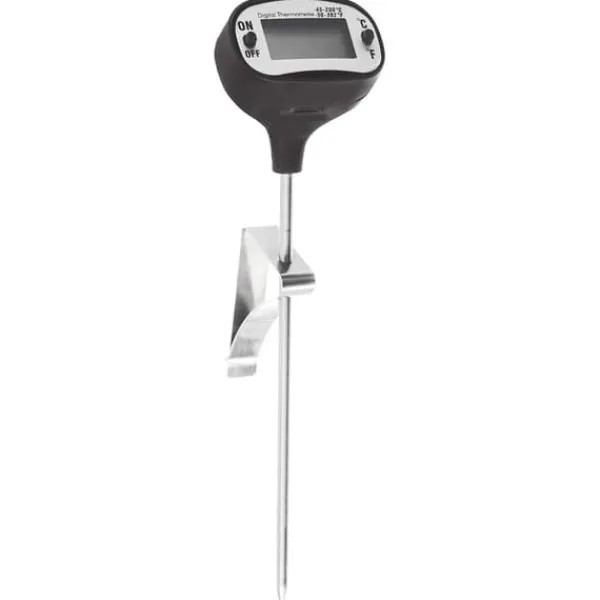 Praktisk klips medfølger – Termometeret ligger behageligt i hånden og sikrer komfortabel brug. Den inkluderer en klips til at holde termometret på kanten af beholderen.