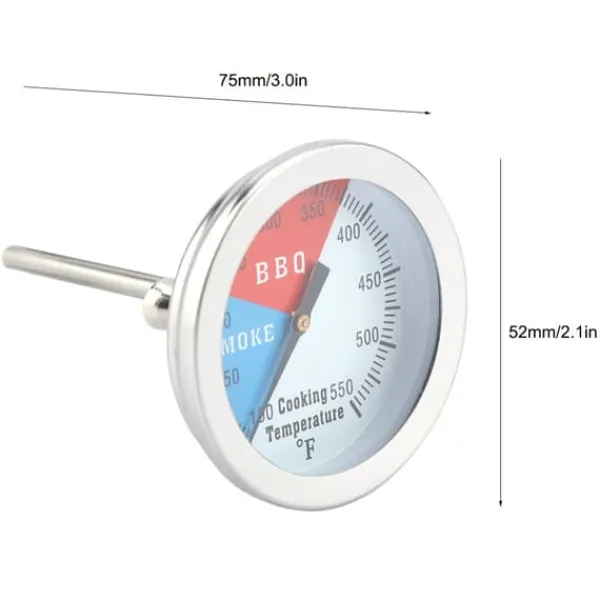 Velkommen til vores butik! Dette termometer i rustfrit stål af høj kvalitet er 100 % helt nyt og bygget til at være robust og holdbart til langvarig brug. Det måler nøjagtigt temperaturer fra 100 til 550 °F, hvilket gør det perfekt til at overvåge den indre temperatur i din grill, grill eller ovn. Installationen er enkel: Bare bor et hul, skub termometeret ind, og fastgør det godt med den medfølgende skive og møtrik. Med universel kompatibilitet fungerer det effektivt med enhver grill- eller ovnopsætning. Produktspecifikationerne inkluderer: Stand – 100 % helt ny, Materiale – Rustfrit stål, Farve – Som vist på billeder, Gevindtype – M8, Gevindlængde – Ca. 15 mm, Termometerstangdiameter – Ca. 64 mm, Termometerfladediameter – Ca. 52 mm, Totallængde – 75 mm, Vægt – Ca. 36 g. Pakken indeholder: 1 x Termometer. Bemærk: Der kan forekomme små målevariationer på 0-1 tomme på grund af manuel håndtering. Farverne kan afvige en smule på billederne i forhold til det faktiske produkt på grund af skærmindstillinger. Se venligst den fysiske vare for nøjagtighed. Tilfredshed: Vores kunder er vores højeste prioritet. Hvis du oplever problemer med produktet efter modtagelse af varerne, såsom skader eller forkert mængde varer, bedes du kontakte sælgeren med det samme. Vi gør vores bedste for at give dig tilfredsstillende eftersalgsservice.