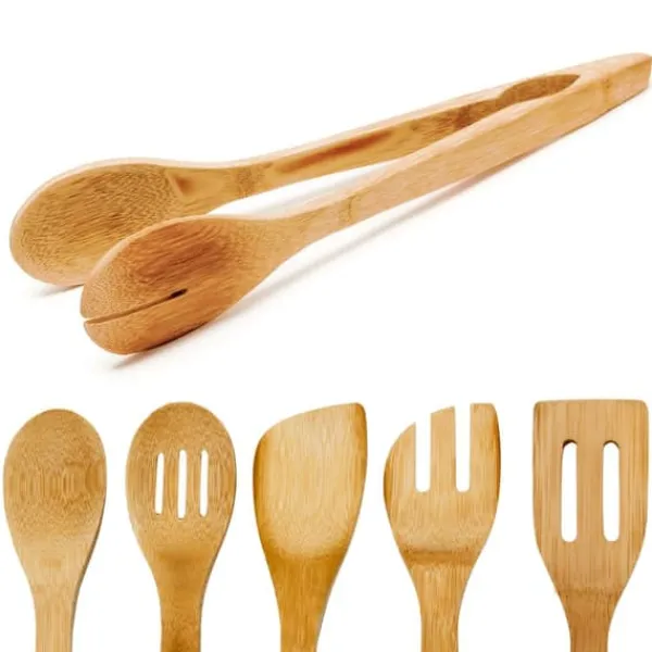 Dette 7-delte bambus køkkenredskabssæt er perfekt til en bred vifte af madlavningsopgaver, herunder stegning, bagning og omrøring, samtidig med at det er skånsomt mod non-stick overflader. Redskaberne er fremstillet udelukkende af fødevaresikker bambus, er nemme at rengøre i hånden og tilbyder et bæredygtigt alternativ til dit køkken. Sættet indeholder forskellige skeer, spatler, tang og en stor gaffel til alsidig brug.
