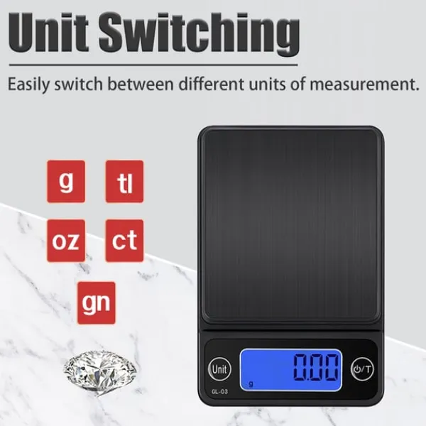 Lille præcisionsvægt: Denne elektroniske vægt er perfekt til præcis vejning af smykker, ædelsten, forskellige pulvere og mere.
