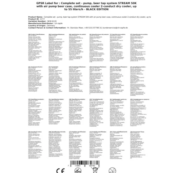 Komplet sæt – Fadølsanlæg, Øldispenser STREAM 50K, 2 linjer, 55 liter/h rustfrit stål, med membranpumpe, øl tryk – BLACK EDITION mild tør køling dispenser fremstillet af rustfrit stål tap output: 50 l / h på 2-4 min minutter klar tør køling dispenser 2 linjer køleteknik er med 45% mere effektiv Med det nye og komplette sæt dispenseringssystemer STREAM 50K BLACK EDITION, kan du nu nyde din helt egen frisktappede øl hjemme eller på din forretning. Ølautomaten er velegnet til både privat og kommerciel brug og er klar til brug på kun få minutter. •Kontrolområde:Med control-range fra +2 til +10 grader, holder STREAM 50K BLACK EDITION din øl frisk og kold fra første til sidste glas. •Ydelse:Denne øldispenser har en ydelse på op til 55 liter i timen ved 10°C TD. •Køleteknologi:STREAM 50K BLACK EDITION bruger den mest avancerede køleteknologi og er 45% mere effektiv end andre systemer. •Hurtig start:Systemet er klar til brug på kun 2-4 minutter, så du kan nyde din øl uden ventetid. •Mobil dispensering:Der er ingen brug af CO2 nødvendig, takket være den integrerede luftpumpe, hvilket gør STREAM 50K BLACK EDITION til en mobil og praktisk løsning. •Koldt øl direkte til hanen:Øllen er afkølet til hanen, takket være kølesløjferne lavet af rustfrit stål – en holdbar og stabil løsning. •Højkvalitets håndværk:STREAM 50K BLACK EDITION er et håndlavet produkt, der er garanteret i høj kvalitet og kommer i en smuk og stilfuld emballage. •Stor kølekapacitet:Med en kølekapacitet på op til 90 glas (0,5 liter) og en fremragende køling i timen, er STREAM 50K BLACK EDITION den perfekte løsning til større begivenheder og arrangementer. •Komplet sæt:Komplet med dispenser, ølkasse, flowkøler, tørkøler, trykluftslange og ølslange, er STREAM 50K BLACK EDITION nem at anvende og hurtig at installere. •Elegant og stilfuld sort nuance:Med dens elegante og stilfulde sorte udseende, er STREAM 50K BLACK EDITION en pryd for enhver begivenhed eller arrangement. Takket være den hurtige og nemme installation, samt dens avancerede køleteknologi, er STREAM 50K BLACK EDITION den perfekte og mest praktiske løsning til at nyde frisktappet øl, uanset om du skal bruge det til private fester eller professionelle arrangementer. Der er ingen bekymringer eller ventetid, og du vil altid have perfekt koldt øl direkte til hanen. Køb STREAM 50K BLACK EDITION i dag og tag din oplevelse med frisktappet øl til et helt nyt niveau!