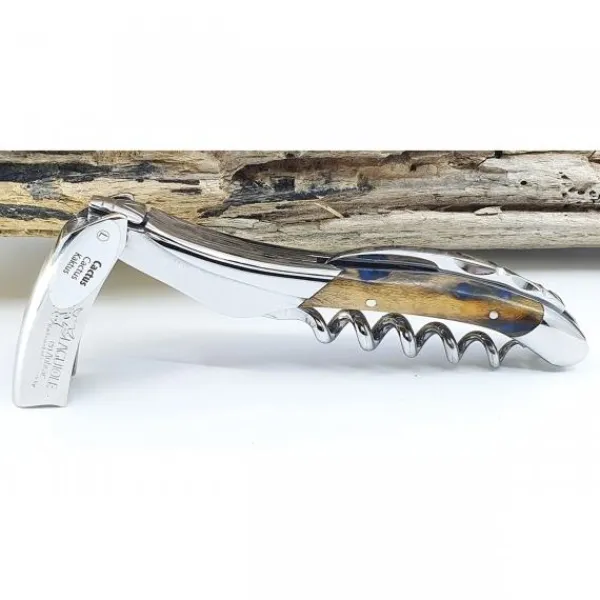 Løft din vinoplevelse med den elegante Laguiole Sommelier Proptrækker Blå Kaktus. Denne proptrækker er mere end et værktøj – det er et kunstværk, håndlavet i Frankrig med enestående håndværk og tidløst design.