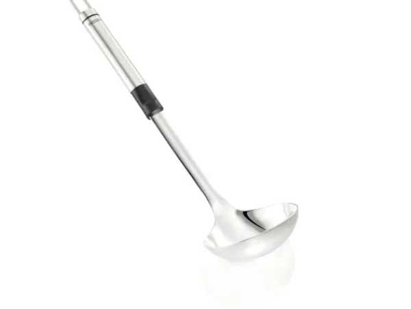 Chic, slank og elegant – det er kendetegnene ved Leifheit ProLine køkkenredskaberne. Deres attraktive design, lavet af rustfrit stål af høj kvalitet og sort plast, gør dem til en stilfuld tilføjelse til ethvert køkken og også perfekt egnet til brug ved bordet. Nem at bruge. Håndtaget på denne store suppeøse fra ProLine-serien er lavet af rustfrit stål af høj kvalitet og har en oval form. Dette sikrer, at suppeøsen ligger komfortabelt og sikkert i hånden. Den leveres med en praktisk ophængningsløkke. Passer til den separat tilgængelige ProLine ophængningsskinne.