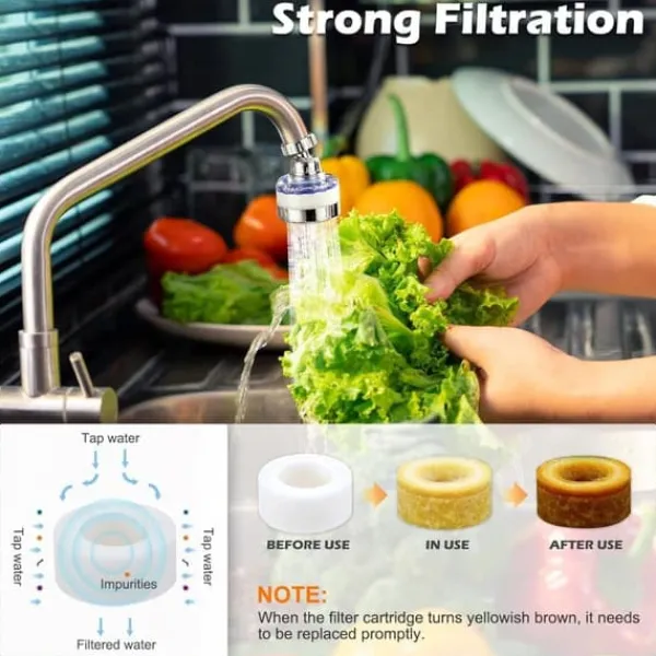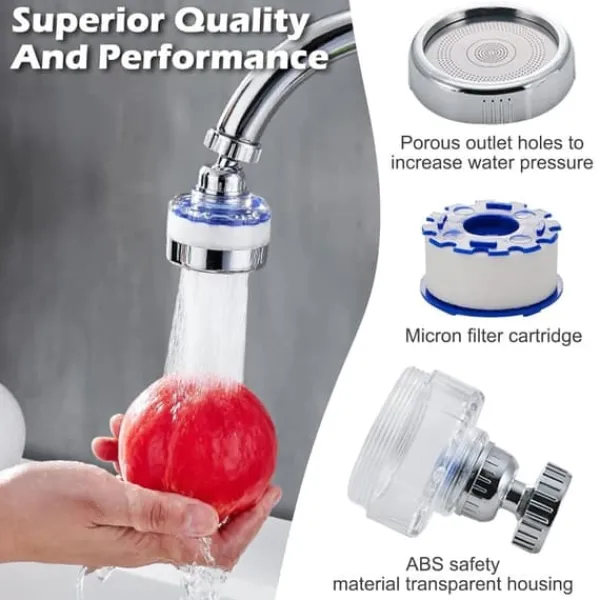 Armaturets 360° roterende design forhindrer stænk under rengøring og sikrer en behagelig oplevelse, når du vasker, laver mad eller bruser.