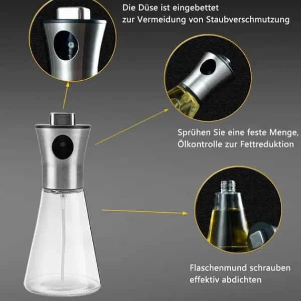Denne 200 ml oliesprayflaske er det perfekte køkkenredskab til sund madlavning. Lavet af højkvalitets 304 rustfrit stål og gennemsigtigt glas, opfylder det fødevaresikkerhedsstandarder og giver en sikker og pålidelig brug. Det unikke spraydesign fordeler olie, eddike eller andre flydende krydderier jævnt, hvilket reducerer spild og hjælper dig med at kontrollere mængden for en sundere kost. Den koniske form sikrer stabilitet og holder 200 ml, mens det gennemsigtige design gør det nemt at overvåge niveauet. Med en bred åbning er flasken nem at rengøre og genopfylde, perfekt til madlavning, bagning eller grillning derhjemme og udendørs.