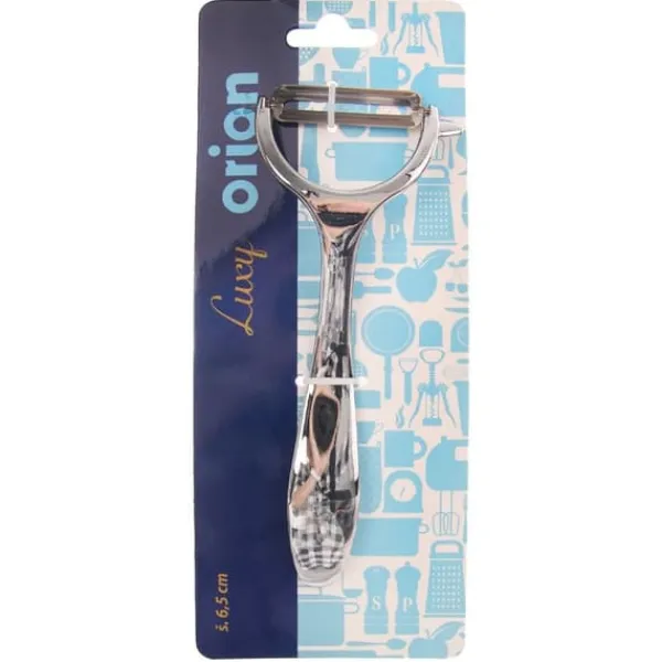 En frugt- og grøntsagsskræller, nyttig i ethvert køkken. Den er perfekt til hurtigt og nemt at skrælle skræller fra ting som kartofler, æbler eller agurker. Skrælleren har et praktisk håndtag og et skarpt blad, hvilket gør den meget behagelig at bruge. Den gør det nemt og sjovt at skrælle friske grøntsager og frugt. Vi tilbyder også andre redskaber fra LUXY-serien. Originalt produkt fra det tjekkiske mærke Orion. Fremstillet i overensstemmelse med europæiske standarder.