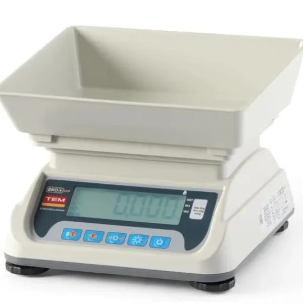 Producentkode: TEKO+LCD06T-P1 Den legaliserede LCD-køkkenvægt, ECO+-serien fra TEM er en præcis enhed, der giver dig mulighed for at opnå perfekte resultater i catering-, handels- og fødevareindustrien. Vægten har primær verifikation og er klar til brug umiddelbart efter udpakning. Det effektive 6 V, 4,5 Ah batteri giver mulighed for drift i op til 100 timer. Enheden er udstyret med et panel med funktionsknapper: indstillinger, nul, tara og skærmbaggrundsbelysning. Produktegenskaber: – Stort 6-cifret LCD-display, – To-delingsskala: op til 3 kg, 1 g division, op til 6 kg, 2 g division, – Panel med funktionsknapper: indstillinger, nul, tara og skærmbaggrundsbelysning, – Indbygget vaterpas, – 4 skridsikre fødder. Tekniske parametre: – Katalognummer – TEKO+LCD06T-P1 – Artiklens stand – Ny – Mærke – TEM – Vejeområde – 20 g – 6 kg – Vejeflade på en flad pande – 176×223 mm – Indvendige mål på den dybe pande – 250x274x( H)67 mm – Højde (mm) – 189 – Længde (mm) – 255 – Bredde (mm) – 264 Sættet indeholder: – Køkkenvægt – Strømforsyning 7,8 V / 1,2 A AC – 3 pander: 2 flade (rustfrit stål) og ABS) og en dyb ABS-gryde